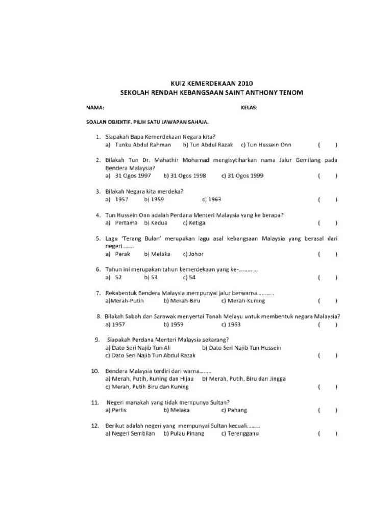 Contoh soalan kuiz kemerdekaan sekolah rendah persoalan t.